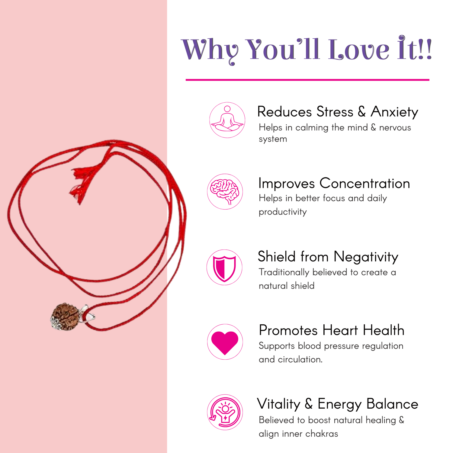 Enrich Your Practices: Known to heighten concentration and rid the wearer of health problems, promoting well-being.