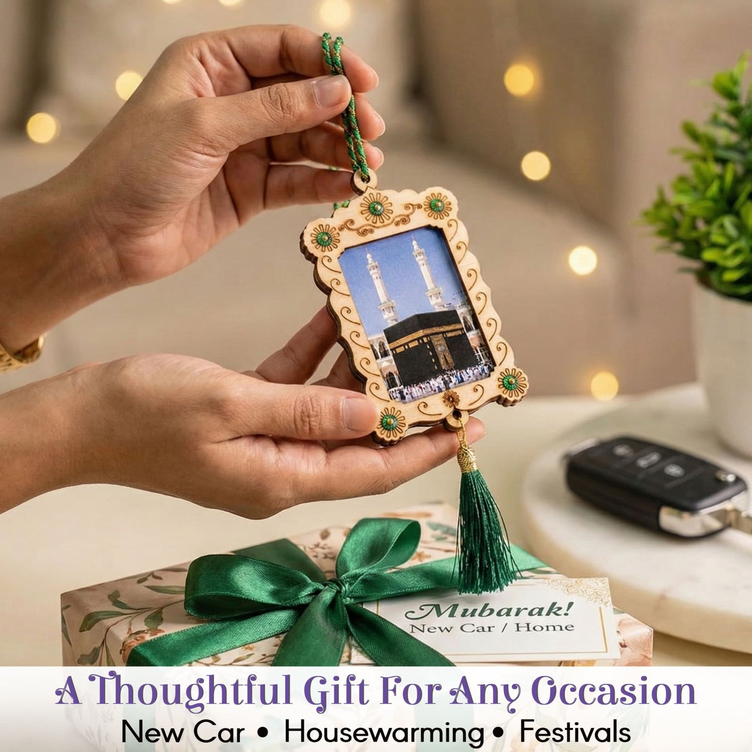 Ideal for a range of spiritual and festive occasions, from Ramadan to Eid, this hanging serves as a heartfelt gesture for car-owning friends or family members embarking on a new journey.